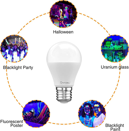 Onforu 2 Pack 9W UV LED Bulb, Black Light Bulb with E27 Base, UVA Level 385-400NM, Blacklights, Ultraviolet Fluorescent Lamp for Party, Glow in The Dark, Body Paint, Fluorescent Poster, Neon Glow